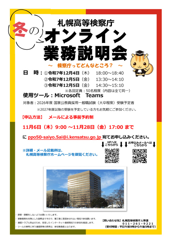 札幌高等検察庁の人事担当者が、オンラインで検察庁の組織や業務について説明し、質問にお答えします!