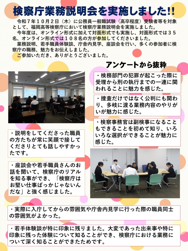 令和7年10月2日(木)に福岡高等検察庁において業務説明会を実施しました。