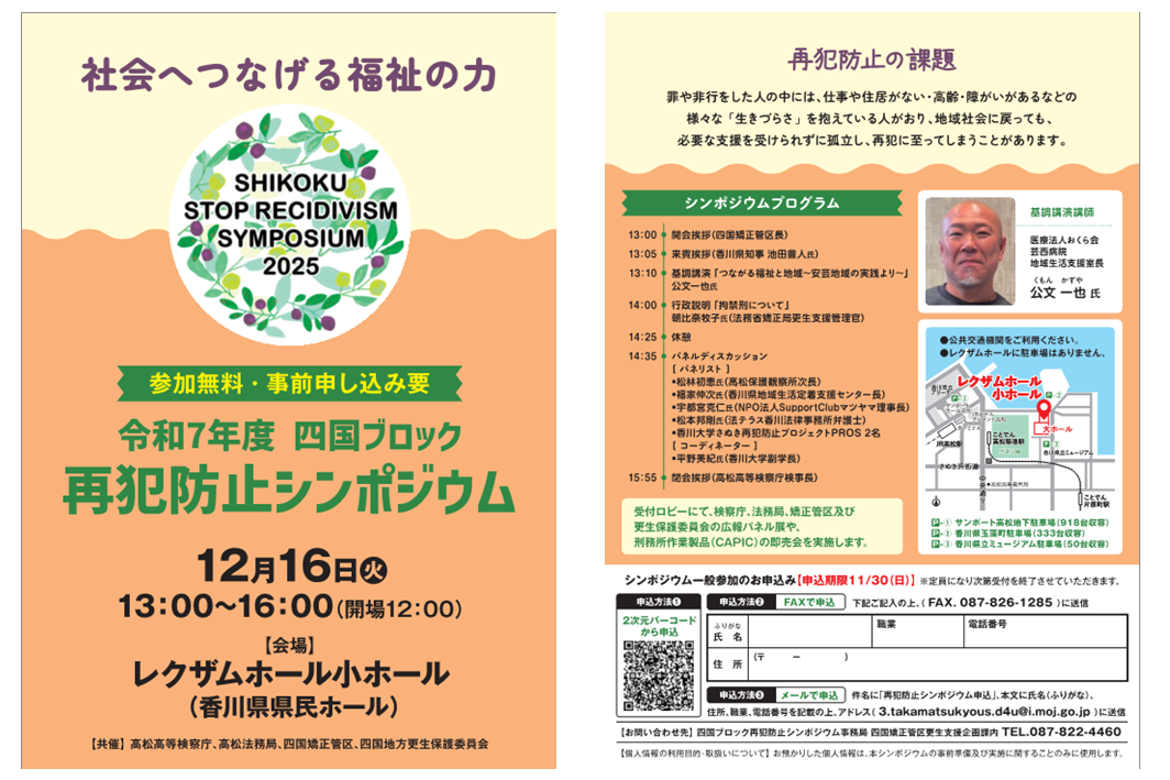 令和7年度四国ブロック再犯防止シンポジウム「社会へつなげる福祉の力」が開催されます。