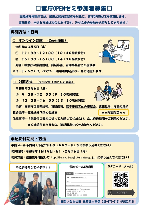 担当:高知地方検察庁事務局総務課人事係