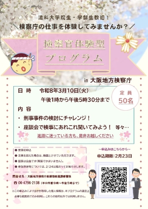 法科大学院生・学部生のほか、将来検察官又は検察事務官としての進路に関心を有する学生50名